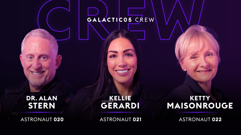 A bordo do VSS Unity, o principal investigador do projeto New Horizons para estudar Plutão, Alan Stern, e Kelli Gerardi, pesquisadora do Instituto Internacional de Ciências Astronômicas, especializada em pesquisa de microgravidade, embarcaram em um vôo até a borda do espaço. O terceiro passageiro era uma turista de origem franco-italiana, Ketty Maisonrouge. Eles foram acompanhados pelo instrutor da Virgin Galactic, Colin Bennett. Este é o quinto lançamento comercial e o décimo lançamento suborbital geral da empresa.