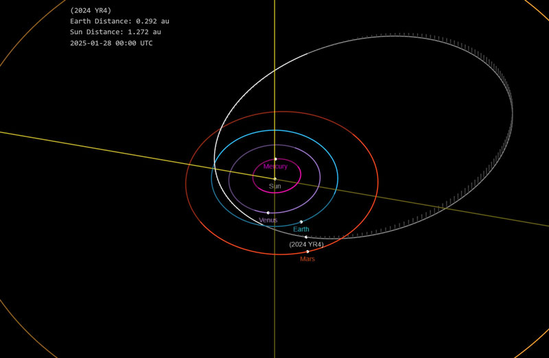 O asteroide 2024 YR4 subiu rapidamente na lista dos corpos celestes mais perigosos da Terra logo após sua descoberta em 27 de dezembro de 2024. Estava lá em 31 de dezembro, e somente o silêncio na NASA e na ESA impediu uma enxurrada de notícias que causavam pânico na véspera de Ano Novo. O asteroide continuou seu caminho, mas prometeu retornar em 2028 e 2032. Além disso, em 2032, ele também terá a chance de encontrar a Terra e permanecer nela para sempre.