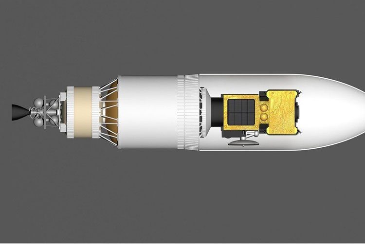 O chefe do veículo de lançamento Changzheng-5 com uma espaçonave de impacto para alterar as órbitas dos asteróides. Fonte da imagem: SCMP