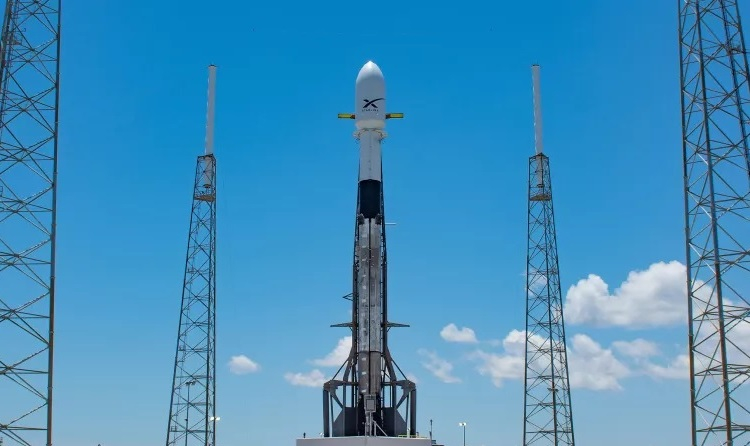 Foguete Falcon 9 antes da decolagem com um lote de satélites Starlink / Fonte da imagem: SpaceX