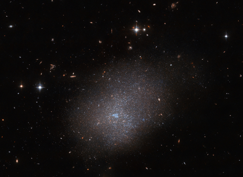 O Telescópio Espacial Hubble tirou uma foto da galáxia ESO 300-16, localizada a cerca de 28,7 milhões de anos-luz da Terra. É observado na constelação de Eridanus (hemisfério sul) e se parece com uma nuvem de estrelas brilhantes. A imagem também inclui outras estrelas e galáxias.