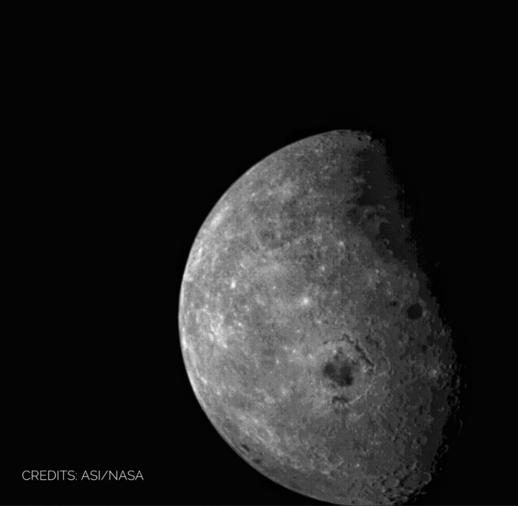 Uma foto do lado oeste da Lua pelo satélite ArgoMoon a uma distância de 170 mil km. Fonte da imagem: Twitter