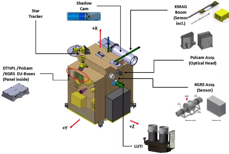 Quatro instrumentos sul-coreanos são representados pela câmera LUTI (LUnar Terrain Imager) para mapeamento detalhado da superfície lunar, a câmera PolCam para observações polarimétricas da Lua nos comprimentos de onda óptico e ultravioleta, o magnetômetro KMAG para estudar o campo magnético lunar e vórtices, e o espectrômetro de raios gama KGRS para estudar distribuições na camada superficial da Lua de elementos químicos e, especialmente, água.