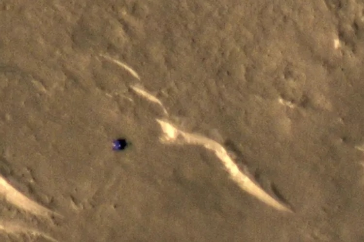 Apesar de o MRO estar localizado a uma altitude de cerca de 288 km da superfície de Marte, a câmera HiRISE conseguiu capturar a trilha de aproximadamente 1,5 km deixada pelo rover chinês durante a viagem desde o pouso em maio do ano passado. A foto também mostra que o caminho do rover passou pelo pára-quedas e plataforma de pouso, que foram usados para garantir uma descida suave do Zhurong durante o pouso.