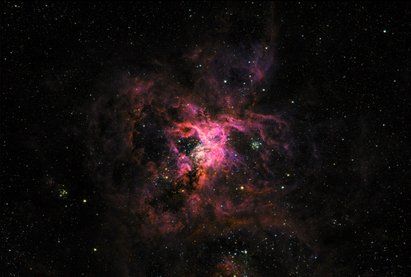 A Nebulosa da Tarântula na luz visível e ultravioleta / Fonte da imagem: utoronto.ca