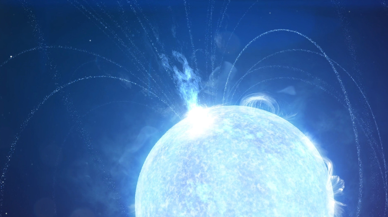 Os restos de um asteróide quebrado pela gravidade estão presos no intenso campo magnético do magnetar, fazendo com que as linhas de força se reconfigurem, se quebrem e se reconectem, produzindo uma explosão rápida de rádio na etapa final. Eventualmente, os restos da rocha espacial atingem a superfície da estrela de nêutrons, produzindo uma explosão de força monstruosa: estima-se que um objeto do tamanho de um marshmallow caindo sobre uma estrela de nêutrons libere energia equivalente à detonação de mil bombas de hidrogênio. .