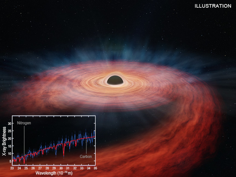 Tais incidentes são chamados de eventos de perturbação das marés. Quando uma estrela que se aproxima demais fica à mercê do campo gravitacional de um buraco negro supermassivo, seus fragmentos aquecem e ocorre um flash que abrange as faixas óptica, ultravioleta e de raios X. Os cientistas mediram os comprimentos de onda desta radiação e estabeleceram as concentrações de elementos no disco de acreção que rodeia o buraco negro – eles foram capazes de estimar a massa da estrela a partir da proporção de nitrogênio e carbono.