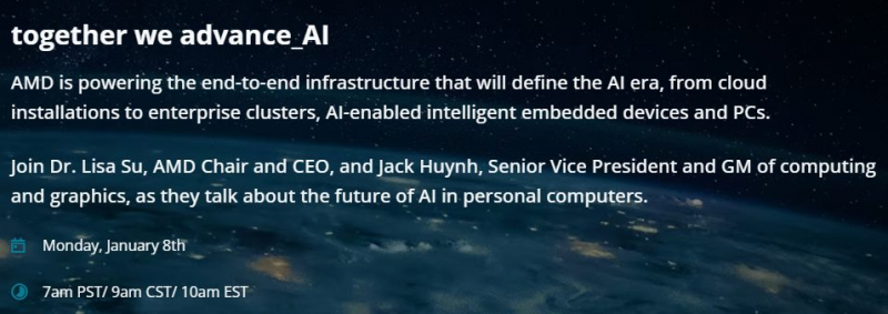 O tema principal da apresentação é “o futuro da IA nos computadores pessoais”. Jack Huynh assumiu como chefe dos negócios gráficos e de computação da AMD em abril passado, substituindo Rick Bergman. Esta divisão da empresa trata da integração de novas tecnologias gráficas AMD em seus processadores centrais e gráficos, bem como do desenvolvimento de novos softwares. A expectativa é que a próxima apresentação da empresa seja focada em processadores híbridos (APUs) com foco no segmento portátil. Em particular, a AMD organizará um estande na CES 2024 onde demonstrará seus processadores Ryzen Z1 e dispositivos baseados neles.