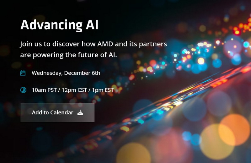A AMD agendou um evento Advancing AI para 6 de dezembro. Será dedicado aos mais recentes desenvolvimentos tecnológicos da empresa relacionados à inteligência artificial. Segundo o portal VideoCardz, no evento a empresa poderá falar com mais detalhes sobre os aceleradores de computação MI300X especializados destinados a data centers.