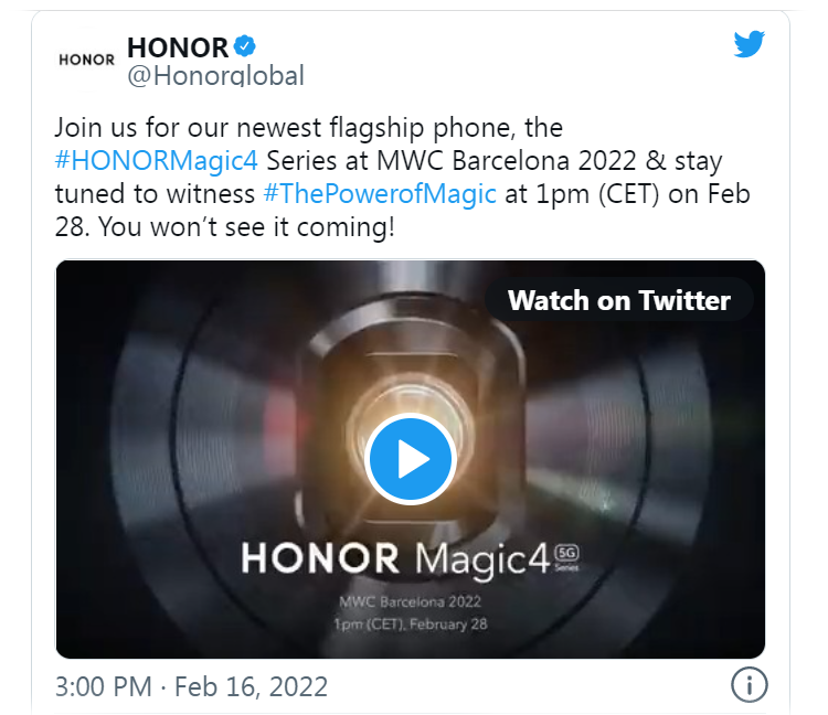 O slogan do evento é “O Poder da Magia”. A julgar pelo vídeo teaser postado no Twitter, a conferência de imprensa da Honor verá a apresentação da principal série de smartphones Magic 4. Dado que a série de smartphones Magic 3 foi lançada há menos de seis meses, a Honor acelerou significativamente a mudança geracional de seus dispositivos móveis.