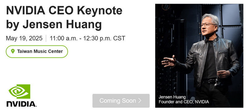 Aqueles que perderem a palestra de Jensen Huang poderão assistir a uma gravação dela no site da Computex. A Computex 2025 será realizada sob o lema “AI Next”. A parte aberta do evento acontecerá de 20 a 23 de maio. A exposição contará com aproximadamente 1.400 expositores que apresentarão seus desenvolvimentos em 4.800 estandes. Os principais temas serão: inteligência artificial e robótica, tecnologias de próxima geração e tecnologias móveis do futuro.