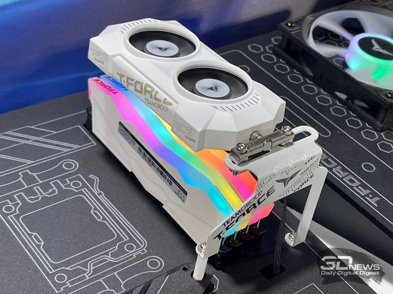 O fabricante também apresentou a memória T-CREATE EXPERT Ai CKD DDR5 com radiadores de alumínio e módulos para laptop T-CREATE EXPERT Ai CAMM2. Ele usa a tecnologia patenteada de seleção de chips de memória do TeamGroup, devido à qual os módulos fornecem alta velocidade e rendimento. Os módulos T-CREATE EXPERT Ai CKD DDR5 oferecem velocidades de até 7200 MT/s, capacidade total de até 48 GB (2×24 GB) e latência CL58. Por sua vez, a memória móvel T-CREATE EXPERT Ai CAMM2 oferece velocidades de até 7.500 MT/s com temporizações CL28 ou 6.400 MT/s com CL24, e a capacidade de um módulo é de 32 ou 64 GB. Aqui, placas ultrafinas de grafeno de água quente são usadas para remover o calor.