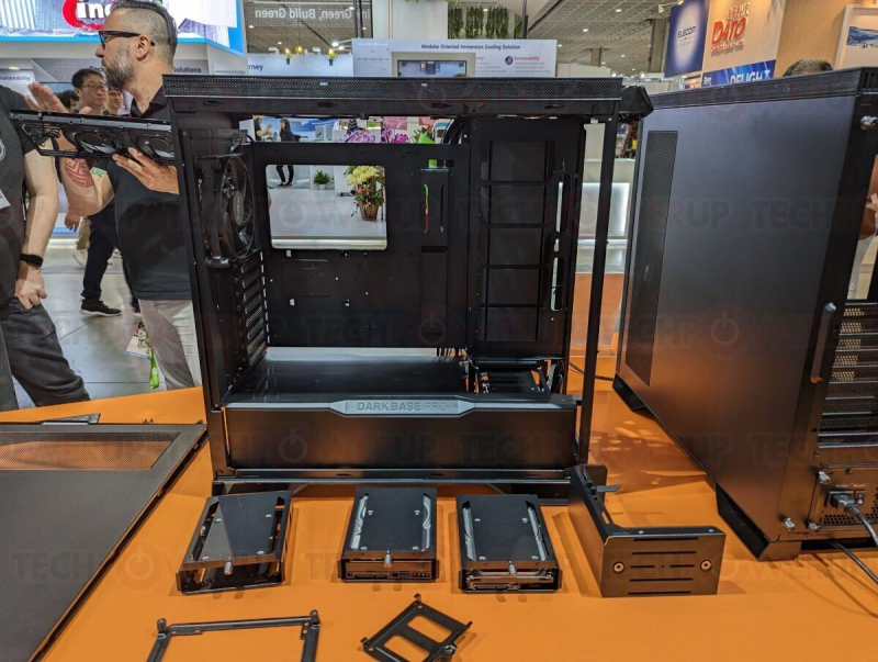 A empresa também apresentou o novo gabinete carro-chefe Dark Base 901. Ele é equipado com painéis laterais de vidro temperado, bem como painel frontal perfurado e inserções metálicas perfuradas laterais. O gabinete inclui um novo adaptador riser para instalação vertical da placa de vídeo.