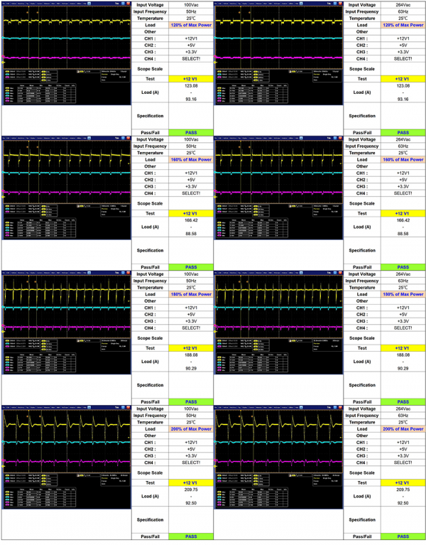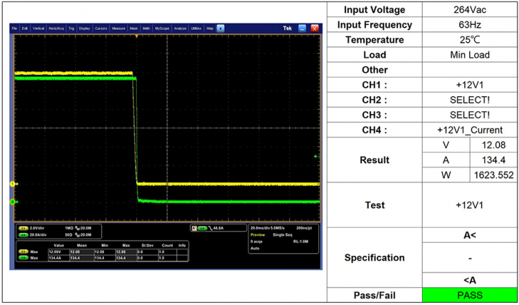 Para PSUs MSI MEG Ai1300P PCIE5, esses picos de potência de pico não são um problema. Com potência nominal de 1300 W, a novidade é capaz de suportar correntes com potência duas vezes maior. O MSI MEG Ai1300P PCIE5 é estável em 120%, 160% e 180% acima da potência nominal, atendendo aos requisitos ATX 3.0 da Intel.