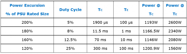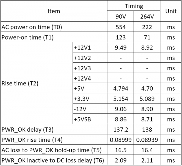 Para cumprir totalmente o padrão ATX 3.0, as fontes de alimentação também devem atender a determinados requisitos de tempo. Conforme mostrado na tabela abaixo, o MSI MEG Ai1300P PCIE5 atende a esses requisitos.