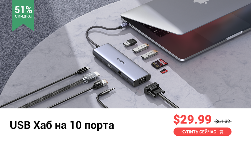 Em busca das dimensões compactas dos laptops, os fabricantes estão tentando reduzir o número de conectores, o que cria certas dificuldades na conexão de dispositivos externos a eles. O hub 10 em 1 Ugreen CM498 expandirá os recursos de comunicação de laptops e outros gadgets com 10 portas, incluindo HDMI, VGA, USB tipo C com fornecimento de energia, três portas USB 3.0 (taxa de transferência de até 5 Gb / s), slots para cartões de memória SD/TF, conector RJ45 para conexão Ethernet (até 1000 Mbps) e conector de áudio de 3,5 mm para conectar fones de ouvido.