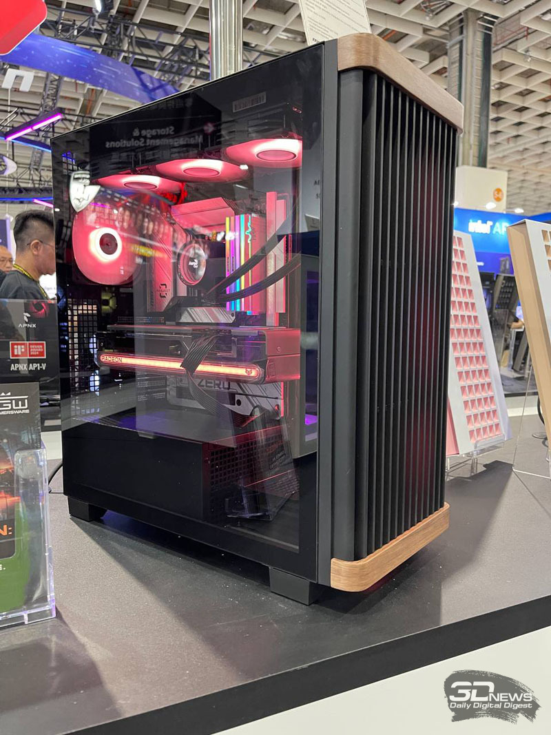 A exposição AeroCool na Computex 2024 apresenta diversas séries de novos gabinetes para PC, incluindo modelos com painéis frontais de madeira ou incorporando elementos de madeira. Os novos itens apresentam um design minimalista e cuidadoso com muitas opções de cores. Os gabinetes AeroCool suportam placas-mãe ASUS e MSI com gerenciamento de cabos na parte traseira, eliminando a confusão de cabos e dando ao seu PC uma aparência esteticamente mais agradável. É possível instalar radiadores de refrigeração líquida de até 360 mm de comprimento nos painéis frontal e superior, bem como até 11 conectores de ventoinha para criar o sistema de refrigeração mais eficiente. O comprimento máximo da placa de vídeo é 400 mm.