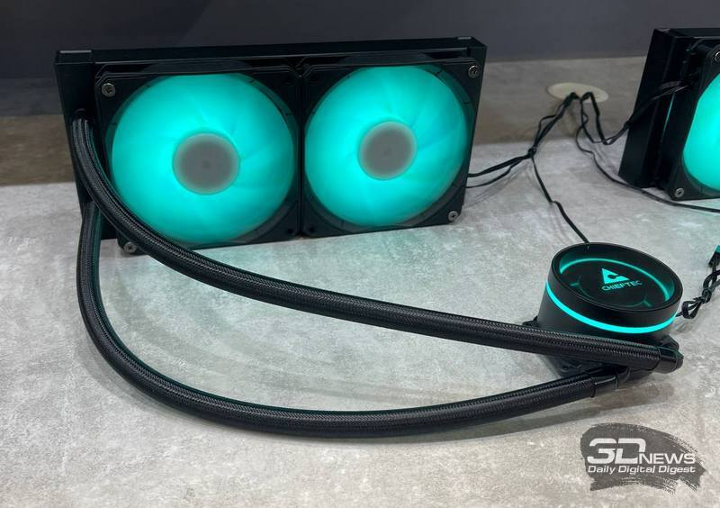 A Chieftec também apresentou a linha Iceberg de sistemas de refrigeração líquida livres de manutenção na Computex 2024. O design da bomba pode ser chamado de minimalista pelos padrões atuais, com iluminação infundida e o logotipo da empresa. A iluminação RGB também está disponível em ventoinhas de 120 mm. As novidades são oferecidas em versões com radiadores de 360 e 240 mm.