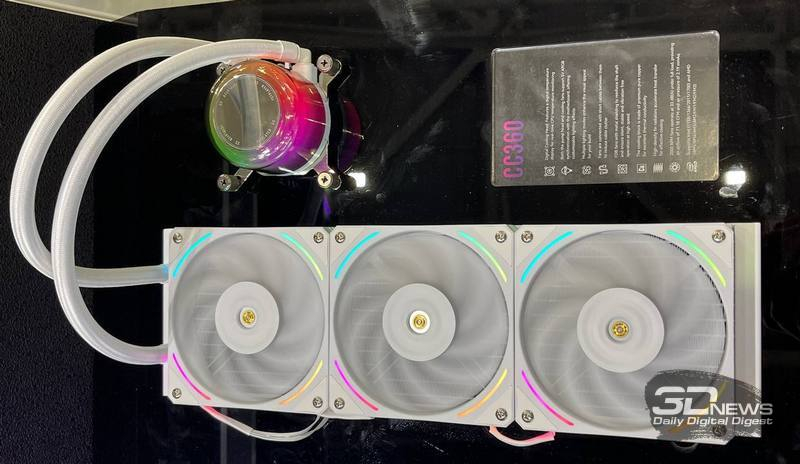 A 1stplayer também apresentou vários modelos de sistemas de refrigeração líquida livres de manutenção na Computex 2024, incluindo o X-360, TS2 360 e CC360. Todos estão equipados com radiadores de 360 ​​mm, mas a gama do fabricante também inclui soluções mais compactas com radiadores de 240 mm. Além disso, todos esses sistemas de suporte à vida são ricamente decorados com iluminação RGB personalizável, encontrada tanto nos ventiladores quanto na bomba.