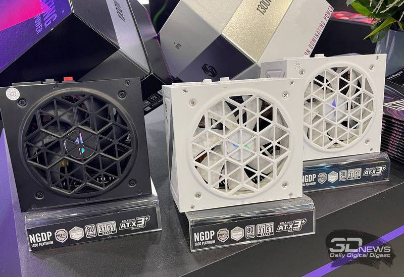 A 1stplayer também mostrou diversas novas fontes de alimentação da série NGDP. Esta série apresenta os modelos mais avançados do fabricante. Essas fontes de alimentação atendem aos padrões ATX 3.1 e PCIe 5.1 e são equipadas com um conector de alimentação 12V-2×6 para placas de vídeo modernas. A série inclui modelos de eficiência 80 Plus Gold que variam de 750 a 1000 W, bem como soluções de eficiência 80 Plus Platinum com 1000 e 1300 W para os PCs mais potentes.