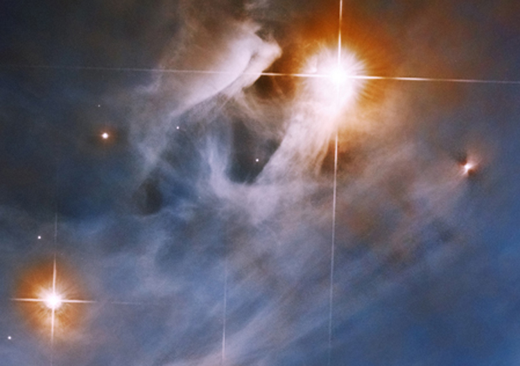 A estrutura nomeada é a nebulosa de reflexão IC 2631. Essas formações são nuvens de poeira cósmica que refletem a radiação de uma estrela próxima para o espaço circundante. O resultado é um jogo de luz caprichoso e hipnotizante.