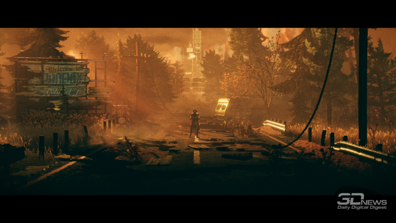 A narrativa visual em REPLACED é excepcionalmente alta no geral, graças à direção segura e à marcante composição das cenas, bem como aos gráficos detalhados. O primeiro plano e o plano de fundo são meticulosamente elaborados, permitindo que você passe um tempo examinando cada cena, percebendo os mínimos detalhes, que adicionam volume e profundidade à ação na tela — os visuais realmente dão vida ao mundo. Combinados com o efeito de paralaxe perfeitamente ajustado e as mudanças dinâmicas de perspectiva entre locais ou seções das zonas de jogo, até mesmo as cenas mais simples parecem verdadeiramente cinematográficas e espetaculares.