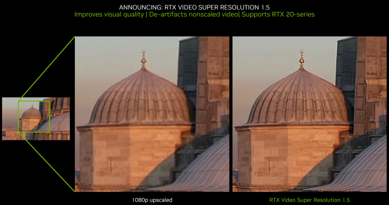 Na nova versão do RTX VSR, a rede neural foi treinada novamente e aprendida para determinar com mais precisão a diferença entre detalhes finos da imagem e artefatos de compressão. O RTX VSR versão 1.5 agora elimina artefatos no vídeo mesmo quando reproduzido na resolução original, o que antes só era possível com upscaling. Diz-se que o RTX VSR torna a reprodução de vídeo 1080p em monitores da mesma resolução mais suave e lida com artefatos de compactação pesados.