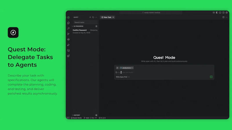 Ao executar o Modo Agente, a plataforma Qoder atua como um assistente de codificação inteligente, simplificando o trabalho do especialista em tarefas básicas – o usuário mantém controle total sobre a IA. No Modo Missão, o sistema Qoder se transforma em um engenheiro completo que produz código testado e pronto para uso. O desenvolvedor precisa apenas criar especificações, delegar tarefas e monitorar sua implementação. O Qoder cria um plano de trabalho de forma independente, divide as tarefas em sequências detalhadas de ações, cria implementações de funções, automatiza testes e validação – em outras palavras, faz todo o trabalho por uma pessoa.