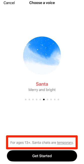 Como presente, a OpenAI anunciou que está disposta a redefinir as restrições do modo de voz uma vez – caso o usuário tenha esgotado o tempo, ainda poderá se comunicar com o Papai Noel virtual. Curiosamente, o modo Papai Noel não pode ser usado por crianças: o próprio ChatGPT tem restrição de idade – é destinado a usuários maiores de 13 anos. “Você deve ter pelo menos 13 anos de idade ou a idade mínima em seu país para consentir no uso dos Serviços. Se você tiver menos de 18 anos de idade, deverá ter permissão dos pais ou responsável legal para usar os Serviços”, afirma o contrato do usuário do ChatGPT.