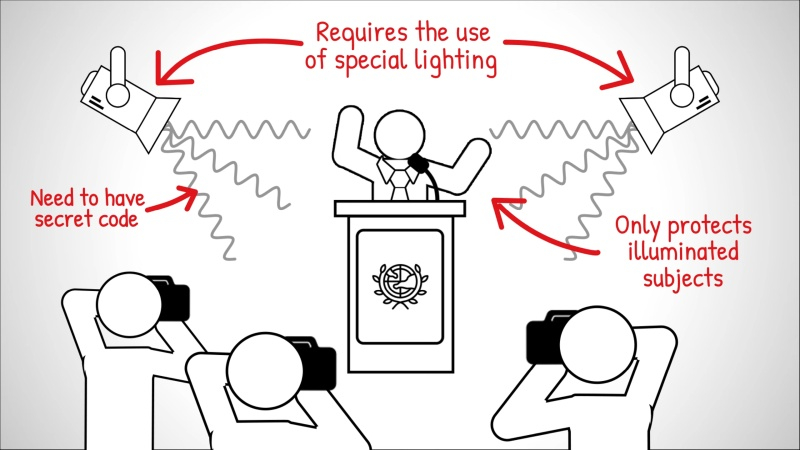 Os desenvolvedores propuseram “embutir” uma marca d’água diretamente no fluxo luminoso das fontes de luz durante a gravação. Isso garante que qualquer câmera — de equipamentos profissionais a smartphones — a capture durante a filmagem de uma cena.