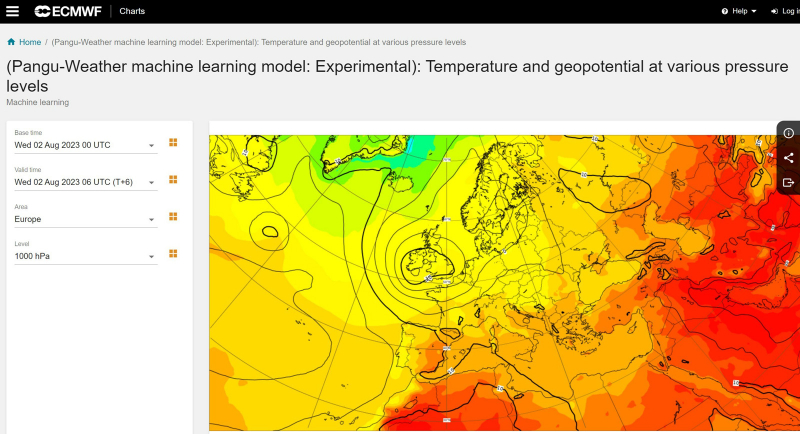 O modelo AI é disponibilizado ao público em geral no site do European Centre for Medium Range Weather Forecasts (ECMWF). O alto desempenho facilita a previsão antecipada e a preparação para condições climáticas extremas. Os meteorologistas, meteorologistas e entusiastas da meteorologia podem ver as previsões meteorológicas globais de 10 dias geradas pelo modelo Pangu Weather.