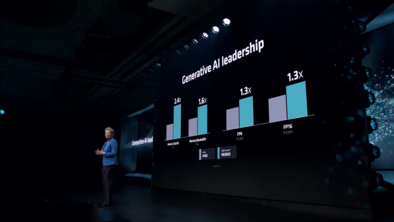 Durante a apresentação Advancing AI, a AMD revelou oficialmente os aceleradores de computação AI dedicados Instinct MI300X e os comparou aos aceleradores H100 da NVIDIA em uma variedade de benchmarks e testes. Especificamente, a AMD disse que um único acelerador MI300X oferece desempenho 20% mais rápido do que um único acelerador H100, e um servidor de oito MI300Xs é até 60% mais rápido do que um servidor de oito H100s. A NVIDIA publicou uma nota em seu site afirmando que essas afirmações estão longe da verdade.