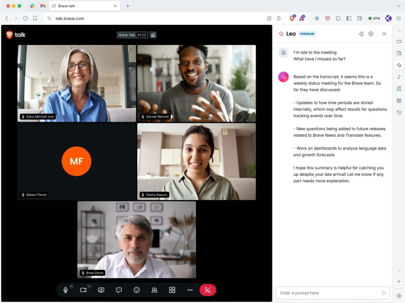 A Brave continua a expandir os recursos do assistente Leo AI integrado ao navegador de mesmo nome. Hoje ela anunciou que Leo aparecerá em seu próprio serviço de videoconferência, Brave Talk – embora apenas para assinantes pagos.