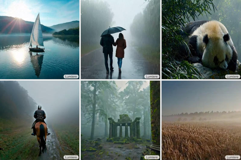 A diferença mais importante entre o Google Lumiere e os análogos existentes é a arquitetura única do modelo – o vídeo durante toda a sua duração é gerado em uma única passagem. Outros modelos funcionam com um princípio diferente: eles geram vários quadros-chave e depois interpolam ao longo do tempo, o que dificulta a consistência do filme gerado. O Lumiere funciona em vários modos, por exemplo, converte texto em vídeo, converte imagens estáticas em dinâmicas, cria vídeos em um determinado estilo com base em uma amostra, permite editar um vídeo existente usando instruções escritas, anima certas áreas de um estático imagem ou edita um vídeo em fragmentos – por exemplo, pode trocar uma peça de roupa de uma pessoa.