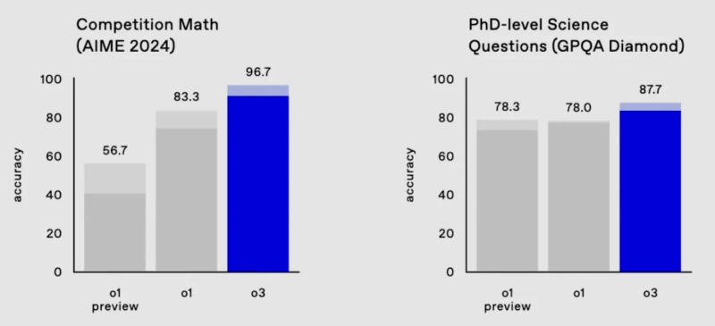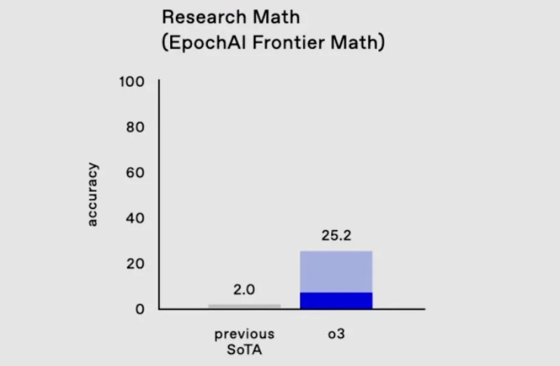 Nos testes mais difíceis de matemática e lógica, que geralmente confundem qualquer outra IA, o3 resolveu 25,2% dos problemas – os resultados de outros modelos não excedem 2%.