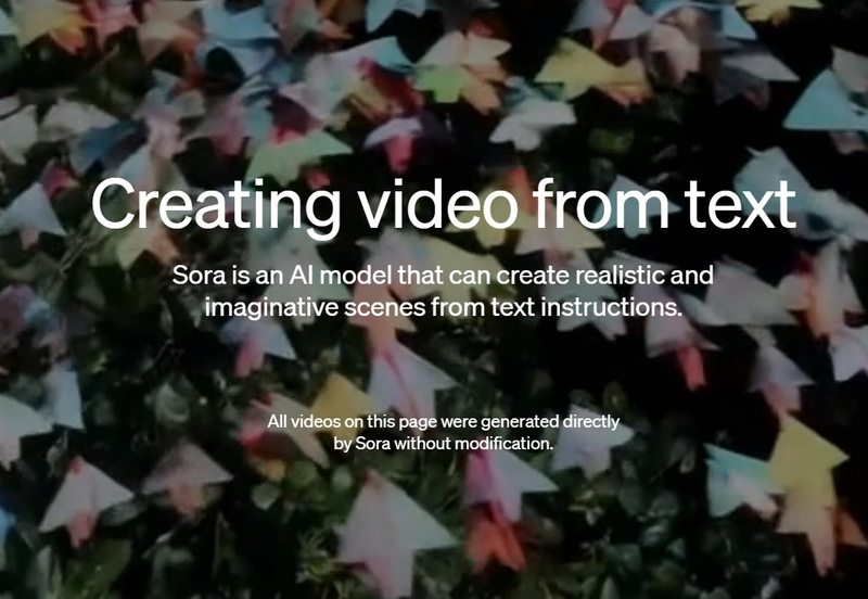 OpenAI introduziu uma nova rede neural, Sora, para geração de vídeo. A empresa diz que Sora “pode criar cenas realistas e de fantasia usando instruções de texto”. O modelo de conversão de texto em vídeo permite aos usuários criar vídeos fotorrealistas de até um minuto com resolução Full HD (1920 × 1080 pixels) com base em descrições de texto.