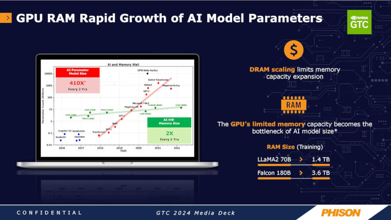Phison demonstrou no evento Nvidia GTC 2024 uma estação de trabalho com quatro processadores gráficos, que era poderosa o suficiente para treinar um modelo de inteligência artificial com 70 bilhões de parâmetros. Isso foi possível usando os recursos de SSD e DRAM do sistema, relata Tom’s Hardware. Em condições normais, esta tarefa requer seis servidores com 24 aceleradores Nvidia H100 e 1,4 TB de memória de vídeo.