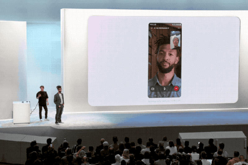 Em algum momento durante a apresentação, o CEO da Meta✴, Mark Zuckerberg, convidou o artista de inteligência artificial Don Allen Stevenson III para subir ao palco. Quando ele saiu, Zuckerberg pegou o telefone e fez uma videochamada, e seu interlocutor era uma versão digital de Stevenson criada por IA – enquanto o verdadeiro Stevenson estava no palco entre Mark e seu próprio clone na tela grande.
