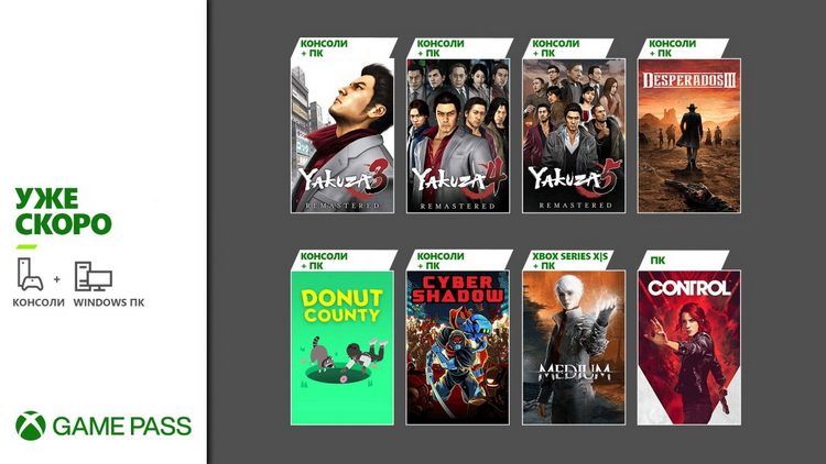 A Microsoft revelou uma lista de jogos em breve para Xbox Game Pass para PC e consoles Xbox. A lista inclui Desperados III, Cyber Shadow, The Medium, Control, Donut County e The Yakuza Remastered Collection (Yakuza remasteriza de 3 a 5). Além disso, a empresa atualizou informações sobre projetos em andamento.