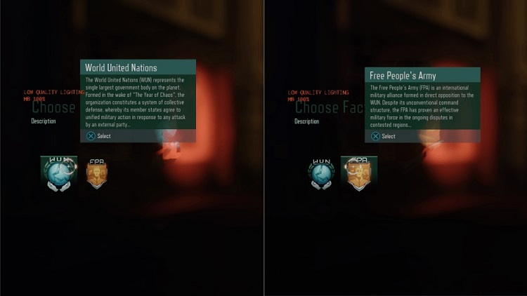 Descrição do WUN e FPA ao escolher uma facção (fonte da imagem: Imgur)