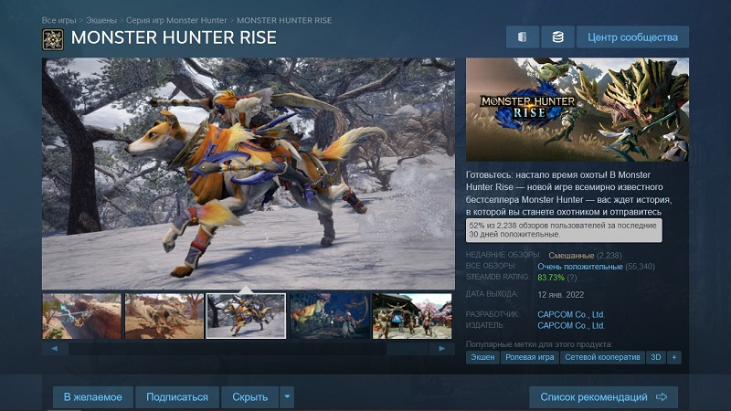 Como os proprietários do Steam Deck descobriram rapidamente, após a atualização, Monster Hunter Rise, que tinha a classificação de compatibilidade mais alta, simplesmente parou de funcionar no PC portátil da Valve: cada inicialização leva a um travamento.
