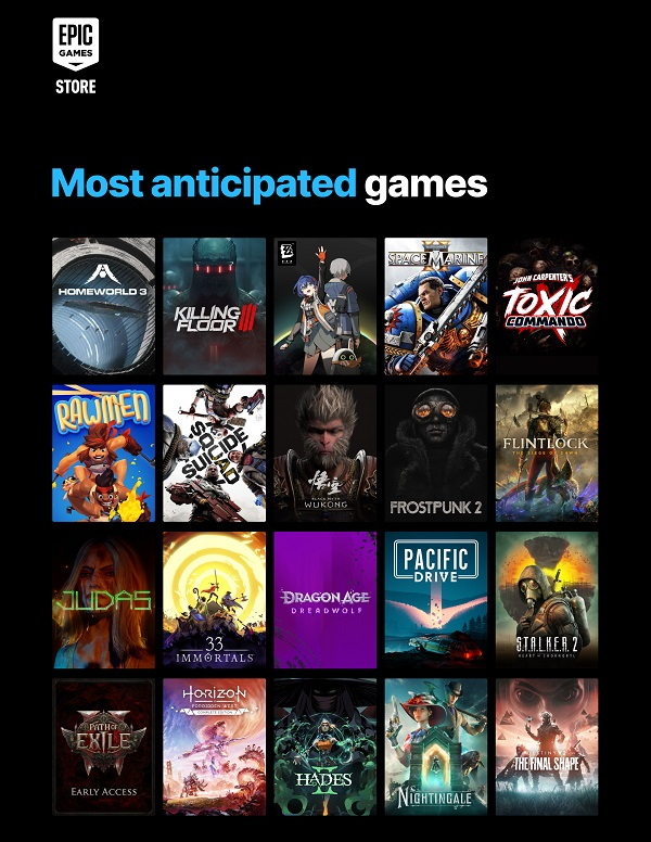 Por fim, a Epic Games apresentou uma lista dos jogos mais esperados que chegarão ao EGS em 2024. A lista incluía Judas e Dragon Age: Dreadwolf, embora ainda não tenham datas oficiais de lançamento.