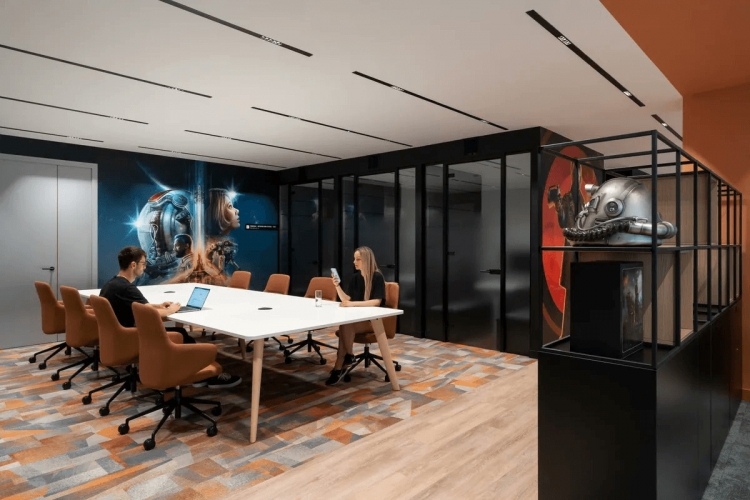 Nas fotos do escritório londrino da Bethesda Softworks, eles notaram um papel de parede representando a ação-aventura Ghostwire: Tokyo, que foi lançado para PlayStation 5 e PC, e o Xbox Series X e Series S estão listados entre as plataformas. foram encontrados no site da empresa de design do local de trabalho Area (já excluído).