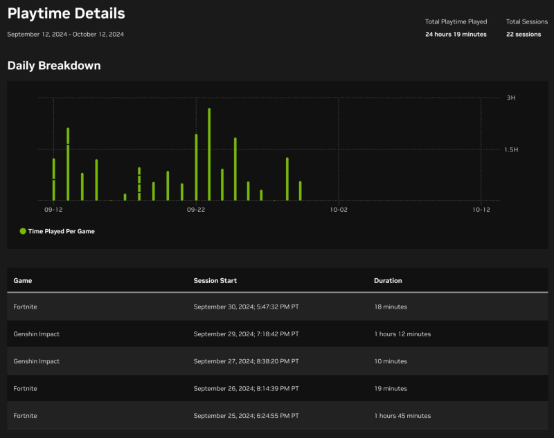 «A partir do início do próximo ano, o GeForce Now terá um limite mensal de 100 horas de jogo para garantir que o serviço possa continuar a fornecer qualidade, velocidade e menor latência excepcionais para membros Performance e Ultimate. O limite mensal de 100 horas de jogo é bastante confortável para 94% dos utilizadores do serviço, segundo as estatísticas disponíveis. Os assinantes podem verificar quanto tempo passam no serviço de jogos em nuvem em seus perfis (exemplo na imagem abaixo). Para usuários pagos, até 15 horas de tempo não utilizado serão automaticamente acumuladas no próximo mês de assinatura”, disse a Nvidia em comunicado.