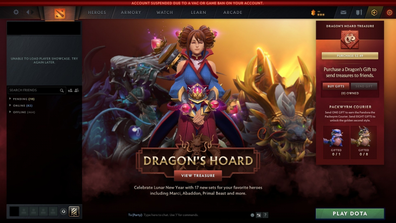 Com o lançamento do patch, surgiram tesouros de presentes no Dota 2 – eles são apresentados na forma de envelopes vermelhos, que podem ser transferidos para outro jogador de 9 de fevereiro a 7 de março. Somente o destinatário selecionado pode abri-los.