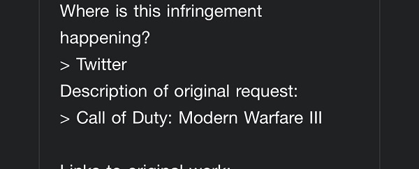 O microblog CharlieINTEL informou que a Activision começou a enviar reclamações de violação de direitos autorais (DMCA) para usuários que postaram imagens de testes internos do próximo Call of Duty.