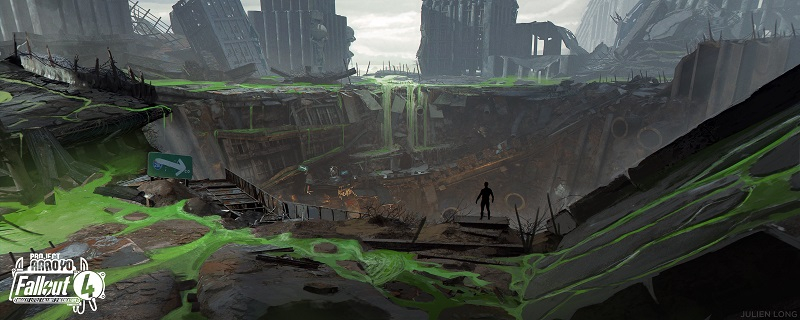 No final de maio, os desenvolvedores também apresentaram a primeira arte conceitual (veja imagem acima) de um local completamente novo que aparecerá em Fallout 4: Projeto Arroyo – uma cratera radioativa na cidade californiana de Oakland.
