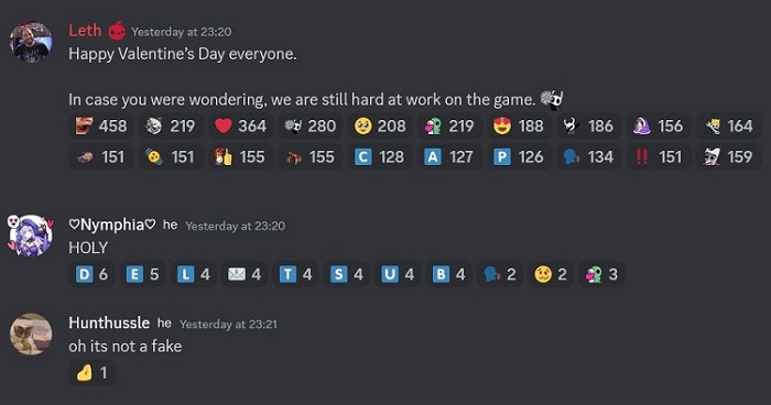 Griffin também deixou uma mensagem de conteúdo semelhante (adicionada com parabéns em 14 de fevereiro) no servidor Hollow Knight Discord. Dupla confirmação do desenvolvimento do Silksong – os fãs não celebravam tal celebração há muito tempo.