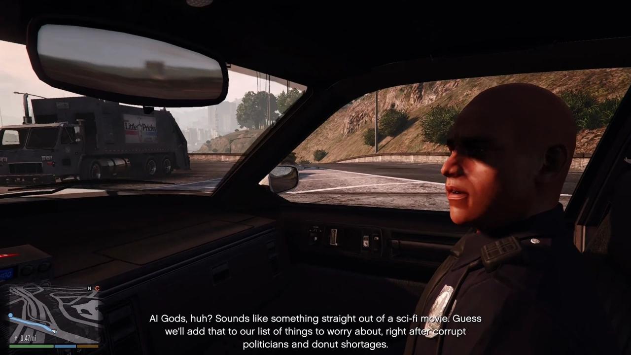 O entusiasta Bloc lançou Sentient Streets há menos de um mês. O mod adiciona um modo de história separado ao Grand Theft Auto V com personagens cuja IA é baseada na ferramenta Inworld AI Character Engine (um análogo do ChatGPT adaptado para videogames). Os jogadores podem concluir tarefas e se comunicar com NPCs em tópicos gratuitos com sua própria voz por meio de um microfone (a fala dos personagens é dublada usando o sintetizador de fala ElevenLabs). Sentient Streets foi distribuído gratuitamente e seu código-fonte estava disponível no GitHub.
