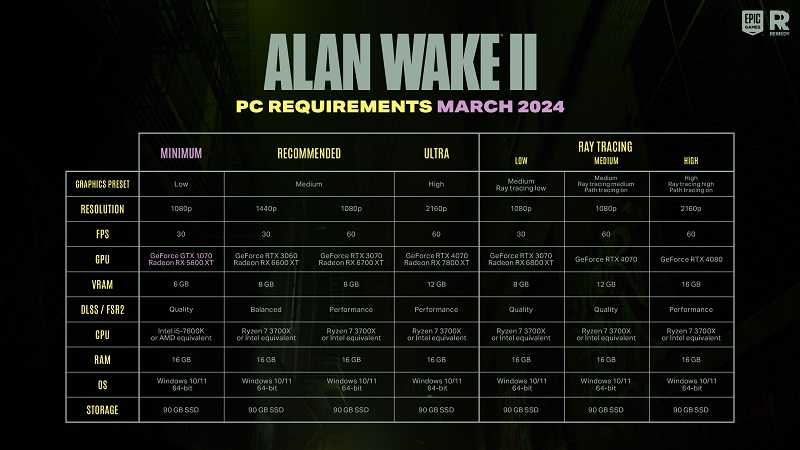 A Remedy também fez um trabalho adicional para melhorar o desempenho de Alan Wake II em placas gráficas Radeon e, como resultado, o estúdio conseguiu reduzir os requisitos mínimos de sistema do jogo.